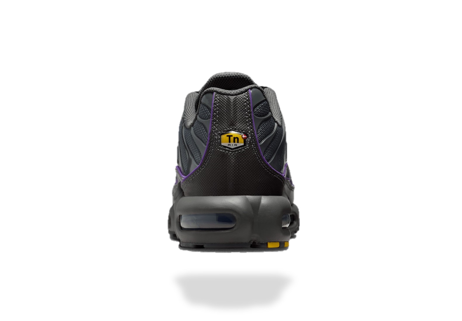 Cette NIKE AIR MAX PLUS TN IRON GREY WILD GRAPE déclinaison se distingue par une base grise foncée agrémentée de détails violets. Un design tout en sobriété rehaussé de superpositions en TPU noir brillant, préservant l’aspect fluide et ondulant propre à ce modèle emblématique. La semelle extérieure, quant à elle, dévoile de subtils accents jaunes sur le profil, clin d’oeil au branding classique « Tn Air » présent sur le talon.