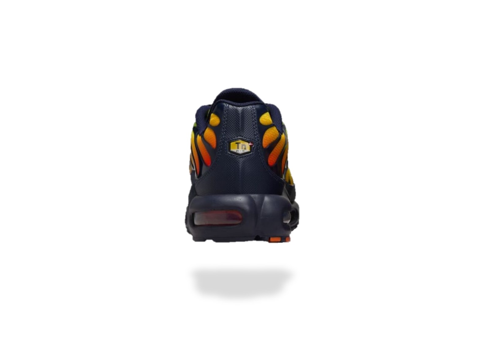 Cette NIKE AIR MAX PLUS TN LEMON VENOM se pare d’une tige en mesh ornée d’un dégradé allant du jaune fluorescent à des nuances orangées. On remarque également plusieurs détails bleu marine, notamment visibles au niveau des superpositions en cuir, des lacets et du mudguard.