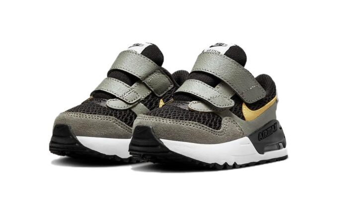 Les caractéristiques principales de la Nike Air Max SYSTM Dark Stucco Saturn Gold incluent l’unité Air visible sur toute la longueur du talon, une tige en mesh et synthétique combinant durabilité et respirabilité, ainsi qu’une semelle intermédiaire en mousse EVA pour un amorti léger. Le coloris associe des tons vert kaki (« Dark Stucco ») et doré pâle (« Saturn Gold »), renforçant son attrait lifestyle et militaire.