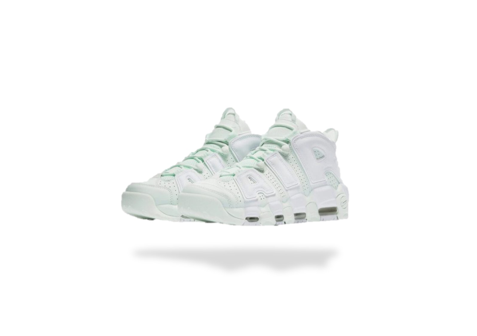 La Nike Air More Uptempo Barely Green utilise une combinaison de couleurs intéressante avec un mint green combiné à du blanc qui forme les lettres de l’imposant Air du upper