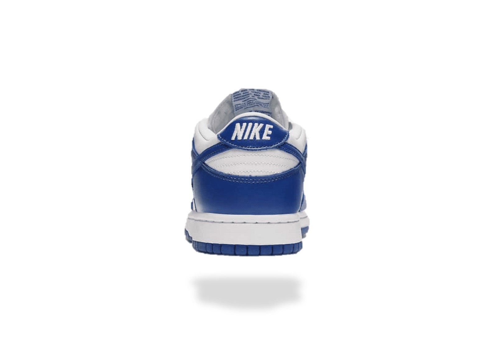 La NIKE DUNK LOW SP KENTUCKY reprend les couleurs des Wildcats de l’université de Kentucky et affiche un upper en cuir blanc, rehaussé par des superpositions bleues. On remarque ensuite d’autres détails assortis comme les lacets, le branding de la languette ou encore la semelle extérieure. À noter enfin que la silhouette B-ball fête son 35ème anniversaire cette année.